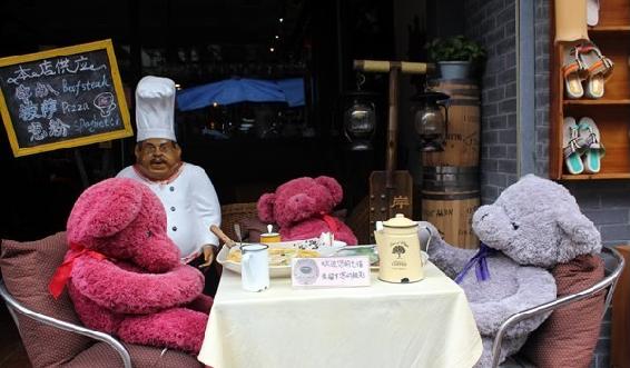 人来人往的西街上,门口竟是几只小泰迪在旁若无人的读书、喝咖啡、看报纸。看着它们悠闲的神采,不少人也被吸引进去享用一杯午后的慵懒。就算不停留,这萌翻人的场景也留在了好多人的镜头里。这就是店门的标志,很好找。