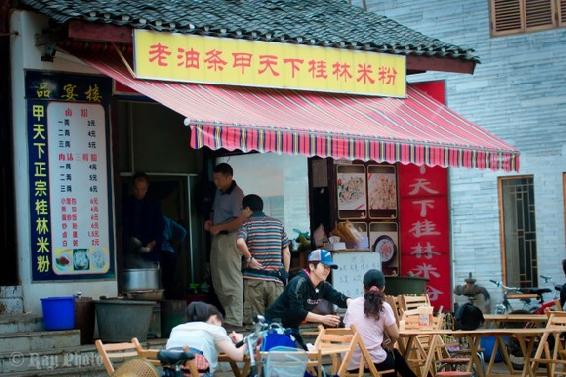 这家主要以经营早餐为主,我下午两点到阳朔,来到这儿老板已在休闲打牌,没米粉卖了。晚上骑车出来,这里也已关门,跟热闹的西街形成鲜明对比,老板真是不在乎多挣几个钱。要吃请趁早。