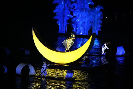 是张艺谋在阳朔漓江上导演的巨型山水实景演出,集艺术性、视觉性、民族性等冲击于一体。演出以12座山峰为山水实景,广袤无际的天穹,构成了迄今为止世界上最大的山水剧场。上百名当地的少数民族群众演员,在灯光和烟雾的映衬下,呈现一场视觉盛宴。印象•刘三姐于2004年正式公演,时隔九年,至今依旧震撼。