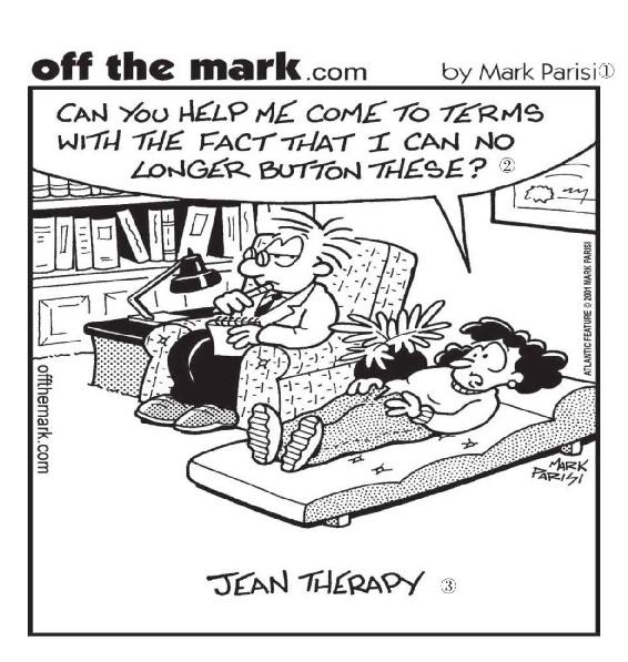 ①马克·帕里西 ②“我的裤子扣都扣不上了,你能帮我接受这个事实吗?” ③关于牛仔裤的治疗
