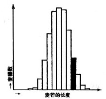 图7 纯种大麦的麦芒长度的统计。涂黑色的那组是选做播种的(本图细节并不是根据实际实验画出的,仅作说明之用)