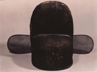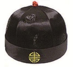 明代官帽(图1-95)也取式于幞头。其制以铁丝编成框架,外蒙乌纱,造型为圆顶式,也分上下两阶,左右各插一个帽翅。帽翅的前身就是硬脚,在明代,这种帽子被称为“圆帽”,民间则称其为“乌纱帽”。因为这种帽子专用于官吏,所以后来就引申为“官职”的代称,取得了官位,叫“戴上了乌纱帽”;革职罢官,则叫“丢了乌纱帽”,直到现代,仍有这种说法。不过很少有人知道,这种乌纱帽的前身就是幞头。