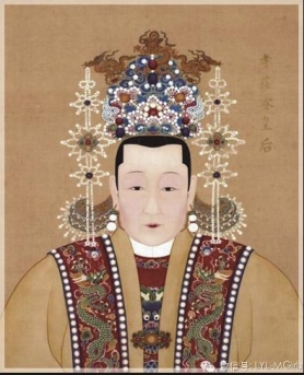 这些凤冠的形象,在《历代帝后像》中都有比较具体的描绘。如其中所绘肖恪皇后所戴的凤冠,除凤凰数目多出两只外,其余都和文献记载相符,显然是明初时的样式。所绘孝贞纯皇后所戴的凤冠与此不同:顶上缀以龙凤,凤嘴衔下一挂珠滴,四周有大小相同的珠花,耳鬓之处有三片博鬓垂下。据史籍记载,孝贞纯皇后之号是明孝宗即位以后才追封的,所绘图中反映的冠式,正是永乐三年(1405)制成的样式。