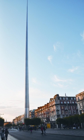 公共艺术(Public Art)是一个外来词,指在公共空间中展示的、民众共同参与的艺术,又被称为公众的艺术或社会艺术。可见,其前提是公共性,只有具备了公共性的艺术才能称为公共艺术。同时,它不隶属于某一类艺术流派或艺术风格,也不单指某一类艺术形式,它存在于公共空间并为公众服务,体现了公共空间中文化开放、共享、交流的一种精神与价值。在本书中,与城市环境相融合,与城市发展且共生,体现了城市文化的艺术称为“城市公共艺术”,如都柏林尖塔,其官方名字为“光明纪念碑”,坐落于爱尔兰首都都柏林的奥康内尔街,是一座高121.2 m的不锈钢尖塔,于2002年开始建设,2003年建成,成为都柏林的最新地标(图1.1),吸引着每一位到此的游客。