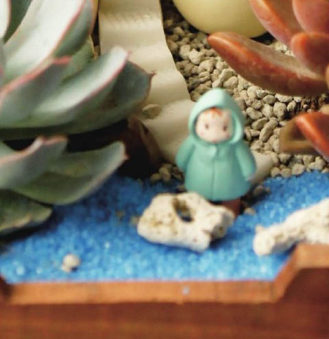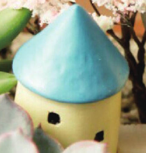 1 蓝顶白墙的树脂小屋,在多肉植物中显得如此生动与和谐。