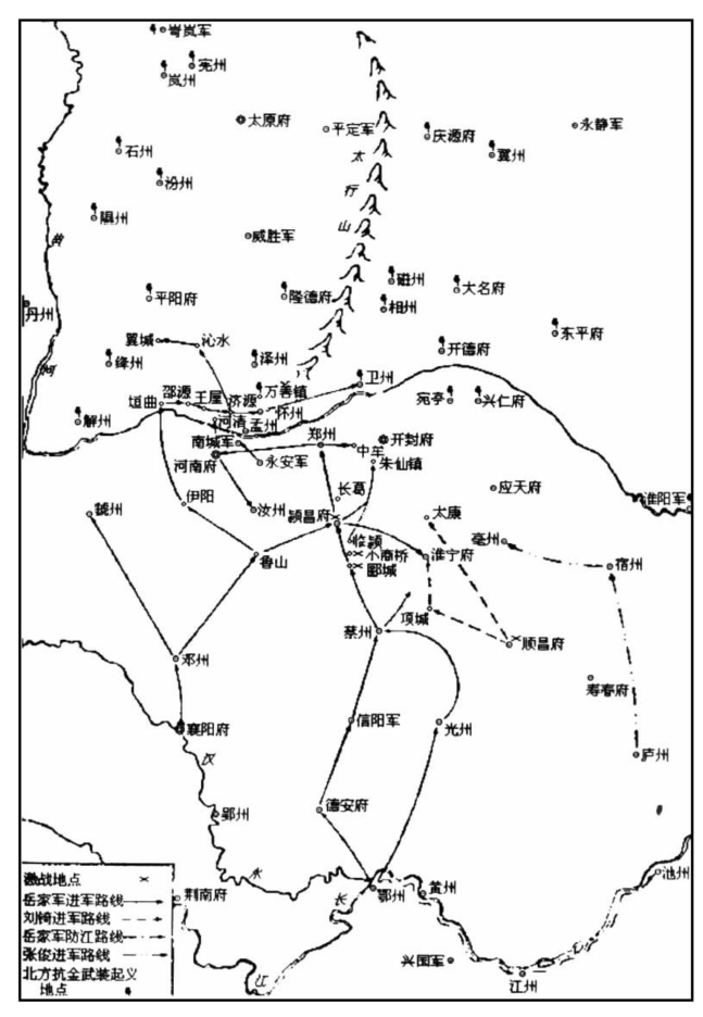 根据岳飞的构想,他觉得目前有两条路可以走,一条路是直捣黄龙,围魏救赵,直驱京洛地区,往金人的老窝里打,他们发现自己的大本营受到围攻,肯定要回援,淮西之围也就可以不战而解了。另一条路是去蕲、黄地区,绕到金军背后,与淮西军夹击金人,争取把兀术的部队围而歼之,让他们有来无回。第一种选择可能有风险,“寇方在近,未暇远图”,所以第二种选择也不错。