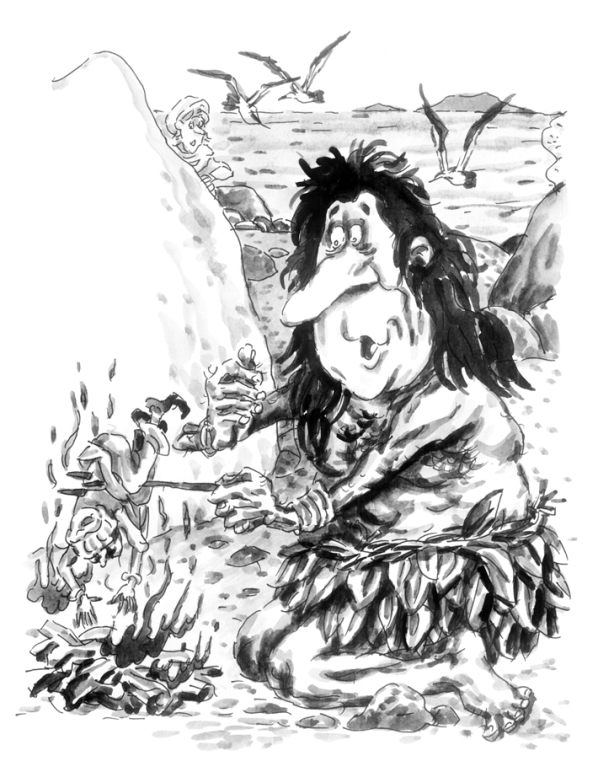 确定他走后,我们开始交谈,为我们自己的生命哭泣,我们说:宁肯在海里淹死,或被猴子吃了,也比放在炭火上烤要好。然后我们起身来到了岛上,但愿能找个地方藏起来。只要不把我们放在火上烤,死对我们来说已不算什么了,到天黑也没找到一个安全的藏身之地,我们非常害怕地回到了那座宫殿里。坐了一会儿,脚下的地突然颤抖起来,那个黑人来了,他走到我们跟前,像第一次一样挨个儿翻看我们,看中谁便把他抓起来,像第一天对待船长那样对待他。