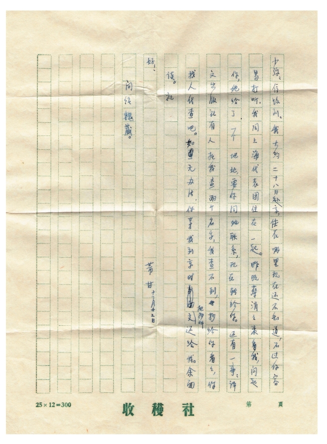 信都收到。我去莫干山休养了八、九天,回来身体稍好。但写字仍困难,无法给你写信。我劝你遇事冷静些,多思考,不必为我担心。但也不要为我打算。我这次出国,不想买东西,也不用花外汇,高孃孃听你的话要送钱给小林,我们谢绝了,你也不要写信让你二舅舅寄钱给我。我出国要按规章办事,不能让人抓辫子。不要给我帮倒忙。