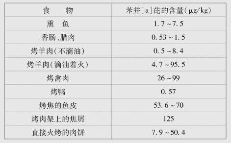 表5-2 常见熏烤食物中苯并[a]芘的含量