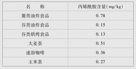 表5-1 常见油炸食品中丙烯酰胺含量