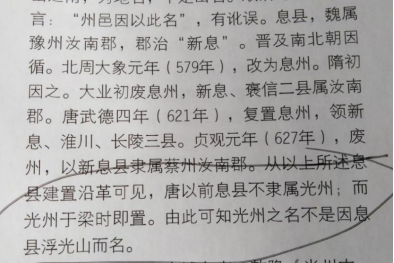 他们说的第一座浮光山是“息县城南”,这是真的、也是我上文一直在说的那座浮光山。此山虽与息县县城隔河相望,但迟至1951年才划归息县管辖。这里,我不得不再多说一句,邻县做史志的同志“引经据典”之后言之凿凿地论断道:“唐以前息县不隶属光州;而光州于梁时即置。由此可知光州之名不是因息县浮光山而名”。作为一名地方文史工作者,做这样的论断时,为什么就不翻翻息县当地的志书,看看他们是怎么记载的!