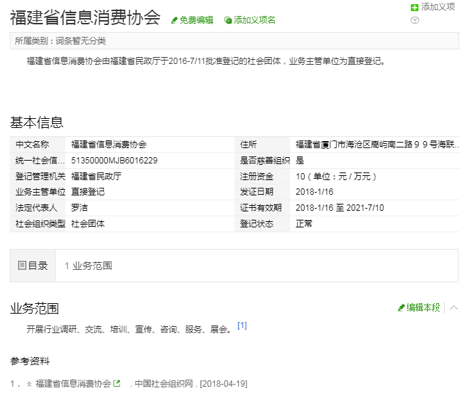 福建省信息消费协会由福建省民政厅于2016-7/11批准登记的社会团体,业务主管单位为直接登记。