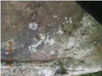 2、湖西岭脚石妈铺女生殖器石刻,俗称石膣,在直径约50厘米天然石穴周围人工凿刻直径约一百二十厘米的圆圈,圈内石面微隆,中间的凹穴里常年积水、长草,水自凹穴下方的裂缝中淌出,形成了一个女生殖器形。位于湖西畲族乡岭脚村,漳浦万安到湖西的公路北侧寨子山,数块花岗岩石立于溪边,亦名为石妈铺。石膣在紧挨公路的大石顶部。距离湖西岭宋桥约五百米(宋桥与现代的秀华桥同址)。(如下图)