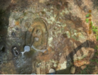 3、大荟山岩画位于佛坛镇下坑村后的石头山上。岩画裸露于花岗岩石上, 大荟山岩画系石质镌刻成,被认定为远古时期作品。据考古专家介绍,通常对这类石刻有两种解释,一为动物蹄印,表现了狩猎和从事牧业的先民为记录狩猎成果或祈求牧畜增殖的愿望;二可能为女阴形象。一至四组岩画大致为一个圆窝穴,外刻一至二重圆弧,经专家认定为女阴形象;第五组与北斗七星相似,说明当时的人类已经对天体有一定的认识,并有意识地刻记在稳妥的、容易辨识的地方;第六组为一弯曲长线,状似蛇形,可认定为原始部落的图腾或族徽。岩画透露当时氏族构成、星象和原始崇拜。岩画石刻,多以生殖崇拜,特别是女性的生殖器崇拜为主题,表现了先民把生殖活动当做十分神圣的事。(如下图)