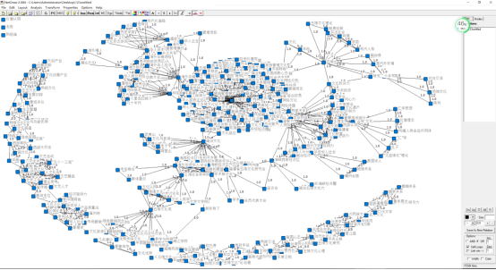 社会网络分析法作为一种独立的研究方法,在发展中形成了自己的理论基础和方法原则。而中心性分析法是社会网络分析法的一种,个人或组织在其所在社会网络中具有怎样的权利,居于怎样的中心地位,是社会网络分析法最早探讨的内容之一[]。在实际情况中比较常用的中心性分析法主要有三种:点度中心性(Degree Centrality)、接近中心性(Closeness Centrality)以及中间中心性(Betweenness Centrality)。其中点度中心性可以通过社会网络中其他行动者与某一行动者之间的直接联系,判断某一行动者在这一局域内的中心地位及重要程度,因此本研究以点度中心性作为可视化图中提取派系进行热点分析的依据。