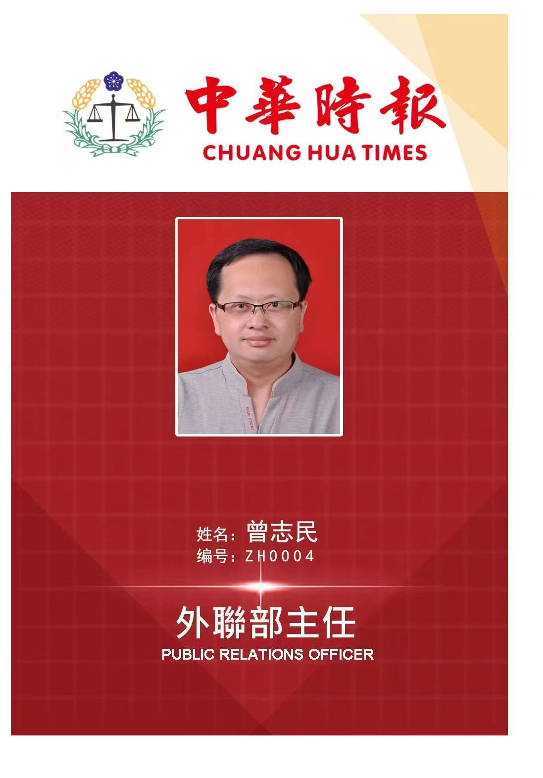 曾志民:《中华时报》外联部主任,中国作家记者协会理事、《你和她》杂志社编委,华厦传媒网总监。厦门市公安集邮协会顾问。