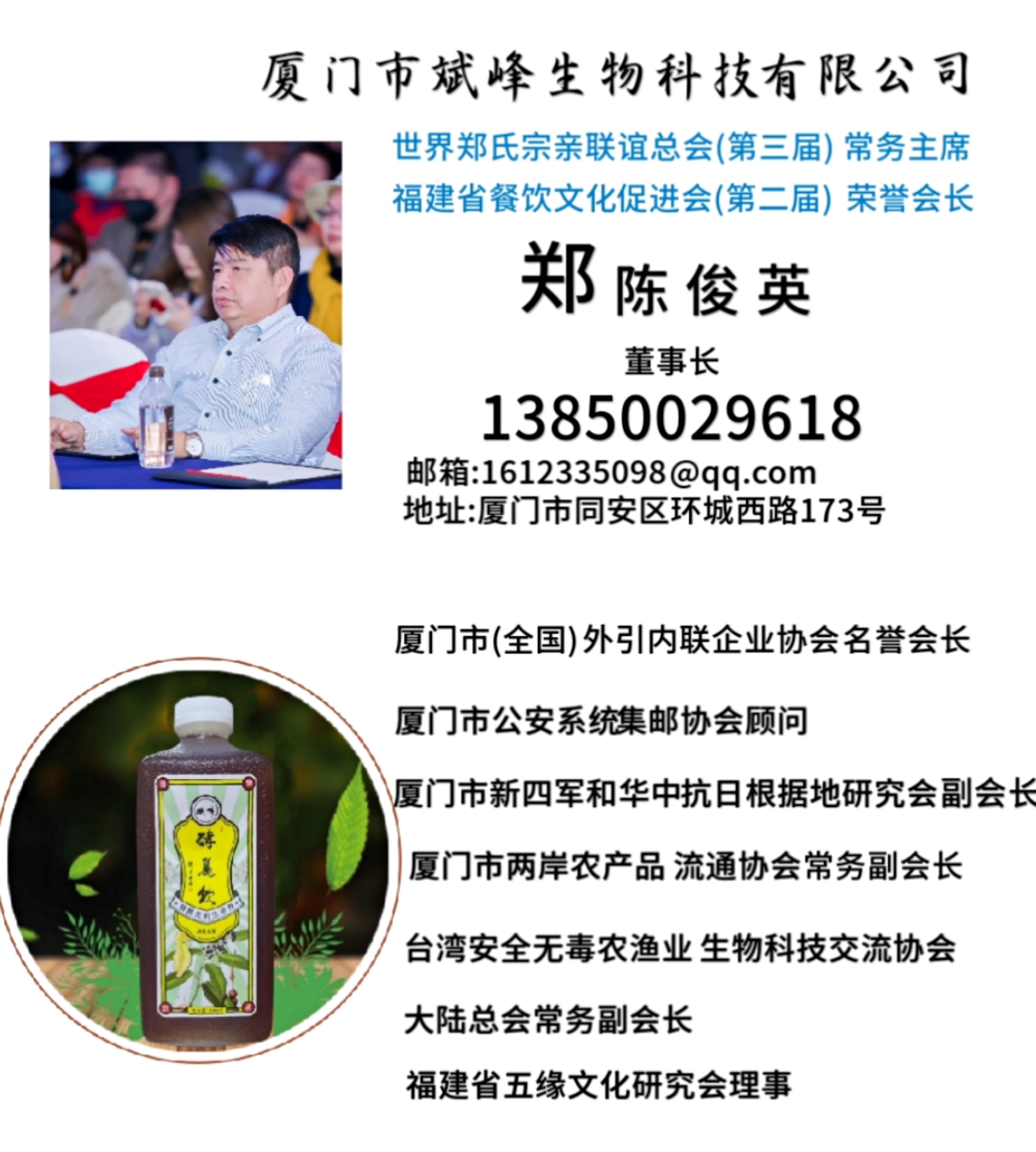 2.厦门斌峰生物科技有限公司 郑陈俊英 董事长 赞助养生保健“酵素”。