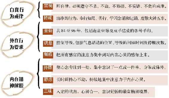 古老的《瑜伽经》记载了“八支行法”,即修习瑜伽的八个阶段,能促人改善自身的行为及意识,走向永恒的觉悟。