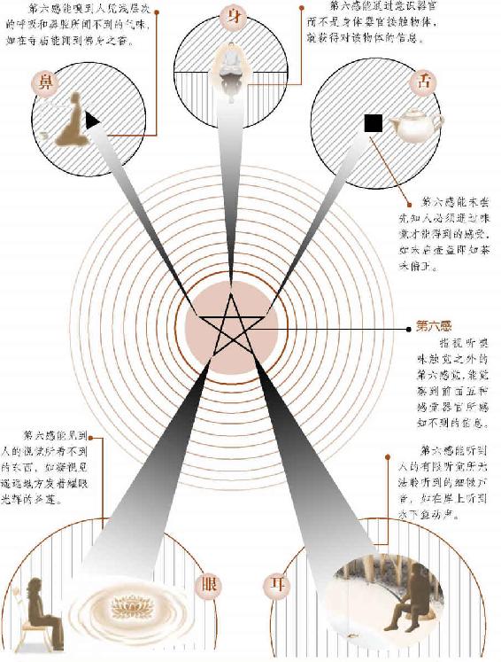 从某种程度上,第六感可以说就是一种直觉,它是潜意识里储存的、没有被意识察觉到的意识“浮出水面”的结果,所以也有种说法把“第六感”比喻为“潜意识的漂浮物”。当人们冥想时,实际上也是在专注“打捞”这些潜意识的漂浮物,从中剥开日常心念的“伪善面具”,露出本来的自己、真相。