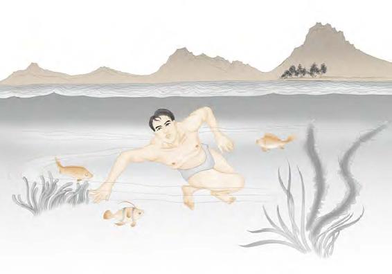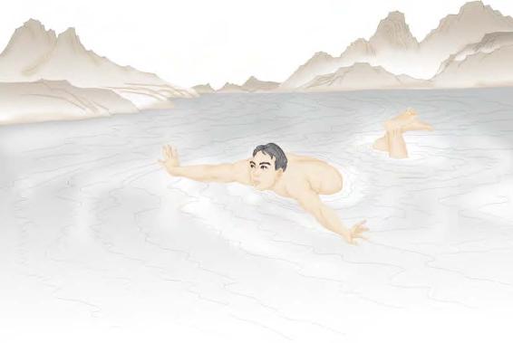 在潜意识中自由漂浮,发现一个非思想所能构造出来的“空境”。如同深入湖面之下、身体极端放松地潜游,在这里感到浩瀚无边的空寂,时间仿佛停止,记忆被净化,那个不断进展、冲突、达成、观察的“我”也静止了。直到到达湖底时,也就看到了人心。