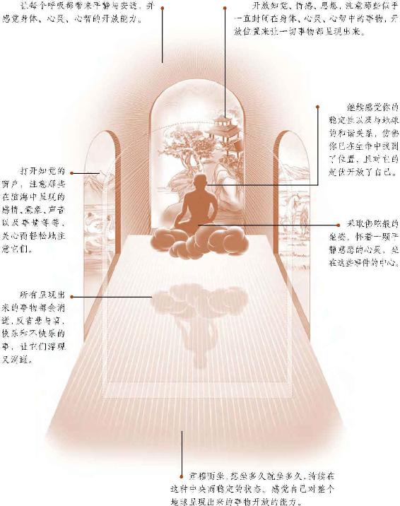以佛陀证悟一般的坐姿,带着尊严和居于宇宙中心的感觉,去面对任何浮现出来的事物。