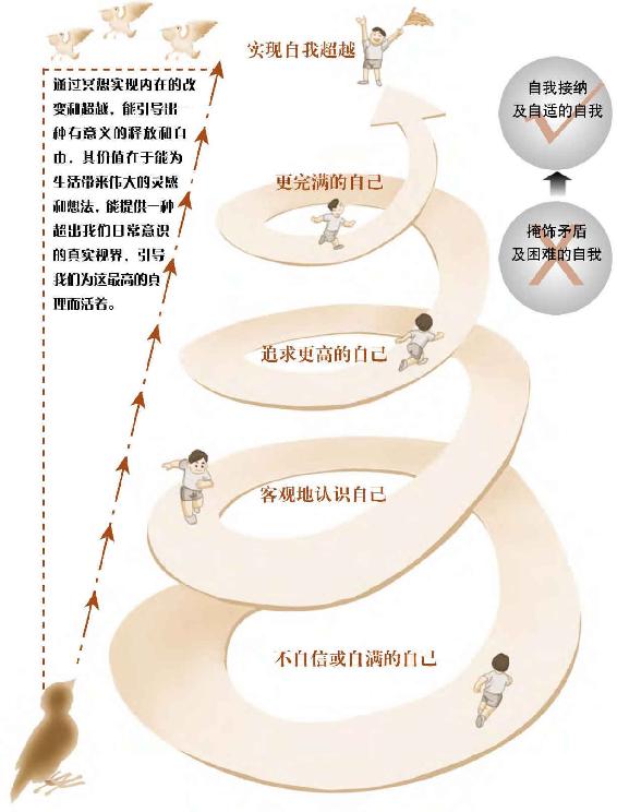 自我接纳是欣然接受自己现实中的状况,对自身及自我特征持积极客观的态度。冥想能看到当下的自己,停止对自己挑剔和责备的思考,坦然地承认并且接纳自己的负性情绪,不论它是沮丧、愤怒、焦虑还是敌意,且不论产生什么样的负性情绪,都选择积极地正视、关注和体验它,并最终转化情绪和精神。