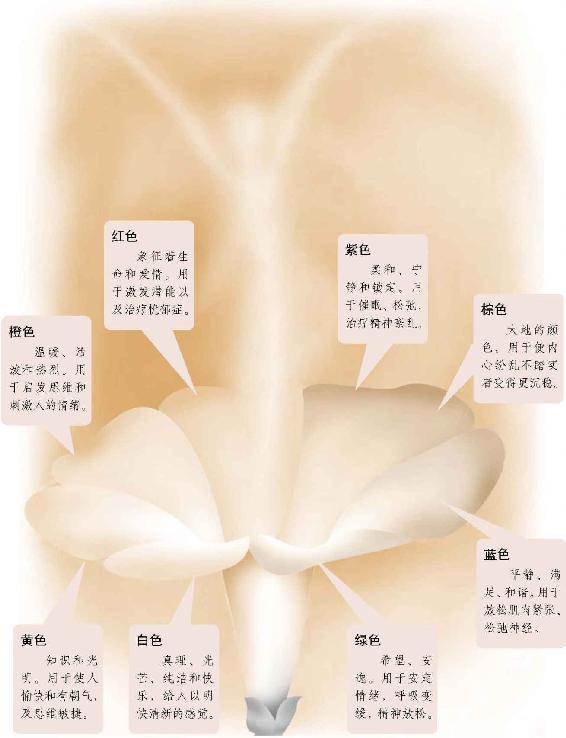 每个人都能从色彩冥想法中获益,当他们从身体主要能量中心即脉轮引出一个自然反应时。因为脉轮被认为和色彩有密切的联系,其七个气轮从下而上分别对应着红橙黄绿蓝靛紫七种颜色。在你熟悉各种各样的色彩及深入了解与之对应的脉轮后,你能选择集中你的思想到一种颜色或一个脉轮上,以解决特殊心理问题;也能随时随地进入冥想状态,或得到你渴求的某种颜色。这种颜色将出现在你的脑海中,以一种抽象的形式将客观事物和那种色调联系起来。对照前面的脉轮知识,在生活中活用色彩能量进行自然疗法,能给予身心安适感,回归平衡的健康状态。