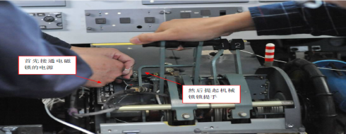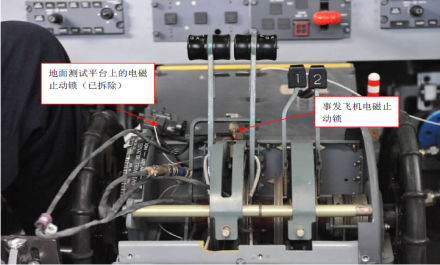 经试验验证,如果操作人员一直向后拉功率杆,此后即使过了4.5秒的延迟时间,空地逻辑信号接通了电磁止动锁,存在机械锁一直卡住电磁止动锁锁舌的情况,此时功率杆无法拉到地面慢车位置,地面慢车电磁止动锁故障灯会闪亮。在这种情下,飞行人员应当松开功率杆后,待故障灯熄灭,电磁止动锁顺利收回,再次向后拉功率杆,可以顺利将功率杆拉到地面慢车位置,但飞行机组并不知晓慢车系统的这一特点。