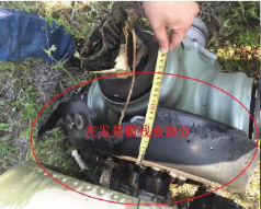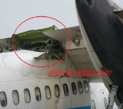 左侧17 框蒙皮撕裂开约10 厘米,20 框蒙皮撕裂开并与后端机身蒙皮有叠加错位,左侧20 框处上部翼身连接件(侧梁)撕裂损伤。