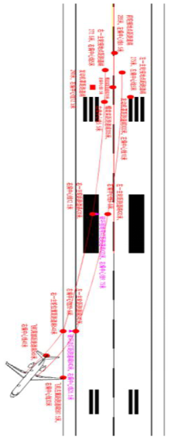 地面痕迹显示,JR1529 航班在跑道入口255 米处开始接地。接地后飞机开始向右偏离,飞机右主轮在距跑道头475 米位置偏出跑道右边线,左主轮在距跑道头540 米处偏出跑道右边线,地面连续拖痕约300 米,飞机最终停在距跑道头565 米处,停在跑道右外侧草地,机尾距跑道右边线15 米,机头方向45 度磁航向(与跑道交叉15 度)(见图2)。