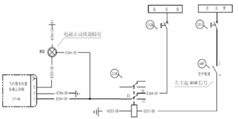 改进优化后,用左、右主起落架上并联的2路轮载信号,以及并联的受左右主起落架4路轮速信号的控制方式来控制飞行慢车电磁锁。当左右主起落架出现任意一个轮载信号、或4路轮速中出现任何一个信号时,便可以接通飞行慢车电磁锁供电线路,提高其开锁的可靠性,以期消除开锁延误的现象。改进优化后,用左、右主起落架上并联的2路轮载信号,以及并联的受左右主起落架4路轮速信号的控制方式来控制飞行慢车电磁锁。当左右主起落架出现任意一个轮载信号、或4路轮速中出现任何一个信号时,便可以接通飞行慢车电磁锁供电线路,提高其开锁的可靠性,从而以减少开锁延误的现象。