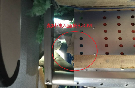 第3D 座椅下方侧壁板被桨叶击穿,桨叶伸入座椅32 厘米,致使3D 座椅金属底板变形微凸起(见图15)。