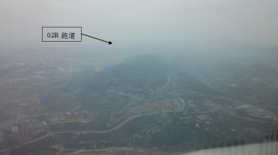 调查组对重庆江北机场02R跑道五边地形情况进行了实地勘察,并在飞机上对五边轨迹上的地形地貌进行了观察见图5。