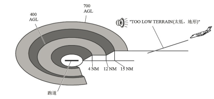 事发飞机装载了增强型的TAWS,并且装载了重庆江北机场的地形数据库,工作原理见图6。事件中航空器未触发机载TAWS警告,因此,调查组认为,事件风险尚未达到需立即采取措施避开地形或障碍物的程度。