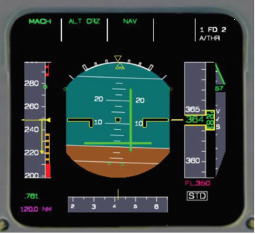 3. 高度穿过35200英尺时在PFD高度窗上闪烁的黄框;