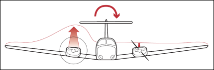 飞机在失速情况下受到扰动的原因有不稳定气流、其他飞机尾流、推力不对称(见图2-7、图2-8)或操纵不协调。分别分析如下:
