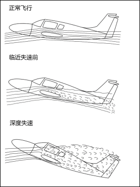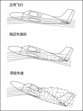 在失速速度附近飞行时,飞机迎角增大,机翼后方气流会出现扰动。此时,常规尾翼飞机的水平尾翼和升降舵处于扰动气流中,其操纵效应会明显变差,并在驾驶盘(杆)上产生明显的振动,可以使飞行员及时意识到飞机临近失速,从而迅速实施修正动作。一旦机翼完全失速,飞机迎角进一步增大,常规尾翼飞机的升降舵会部分或全部暴露在机翼扰动气流的下方,恢复操纵效能,从而有利于降低飞机姿态改出失速。