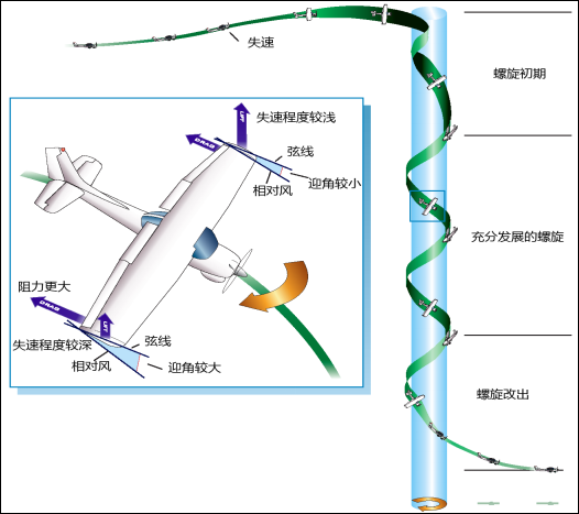 在进入螺旋后段,发动机处于大功率状态,阻碍了飞机的螺旋改出。