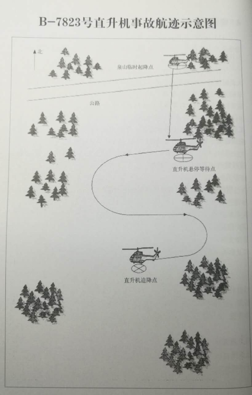 附件:B—7823号直升机事故航迹示意图
