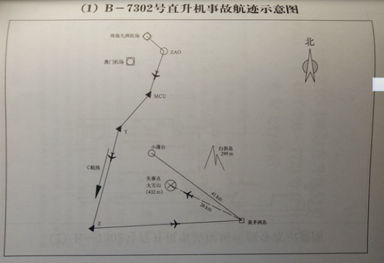 该机09: 19在黄茅洲岛着陆。着陆后飞机未关车,乘客下机并卸下货物后于0922从黄茅洲岛起飞,航向转向307度直飞小蒲台。0925机组向香港报告:预计小蒲台时间09: 34,保持1000英尺。香港询问B-7302,说你的C模式(高度显示)没有在我雷达里显示,机组未予回答,然后三次请示香港直飞小蒲台,并得到香港同意。092757, B-7302,与深圳进近取得联系,深圳指挥其听澳门指挥,机组回答明白,深圳高度多少,机组回答高度300米。0929:50,机组与澳门联系,报告预计小蒲0934,澳门0937,保持1000英尺,澳门回答收到,此时是09:30:12, 以后便再没有联系了。