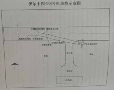 19811212日,呼和浩特天气适航,15:00静风,无云,能见度大于10公里。638号机于15:03由东向西起飞,三转弯位置前均正常。在四边拉的单发,准备作单发落地。四转弯时因向阳看不到跑道(导航台未开),机组根据地标判断四转弯晚,飞机偏右,即往里切。四转弯改出后还没有看到跑道,此时飞机高度200米。由于教、学员忙于调整高度、速度,修正下滑方向和找跑道,而忘掉了四转弯改出后应首先放起落架,进行落地前检查。飞机140米过近台对正跑道,速度210220公里/小时,放15度襟翼;高度3035米时放30度襟翼,速度180公里/小时。飞机进跑道后高度约2米时,起机线指挥员×××发现没放起落架,连喊两声复飞,机组均收到而误认为跑道有人,经视察没发现有人,继续作落地操作,没有立即作复飞处置。直到螺旋桨打地后,发现飞机接地和平时不一样,比正常低,这才觉察没放起落架,但为时已晚。据事后现场调查,飞机接地点(螺旋桨)距跑道头265.5米,在321.5米处右襟翼擦地,由于飞机惯性作用继续前冲并开始向右偏转,在距跑道头740.5米处停住。机尾距跑道边4米,机头距跑道边8米,停机方向278度。