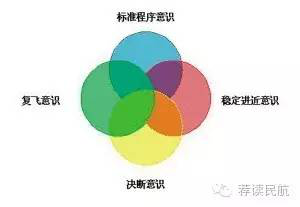 从图中可以看出,四种意识的圆心靠得越近、重合度越高,其公共部分就越大,也就是飞行作风越严谨;如果离得越远、重合度越小,其公共部分就越小,甚至没有公共部分,此时的飞行作风就存在相应的缺陷。对于进近着陆安全来说,其运行的范围,应该严格锁定在“标准程序”、“稳定进近”、“决断”和“复飞”四种意识框定的公共部分之内。