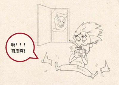 我找了几本妖魔鬼怪的书籍,把自己关在房间里研究这个题目,屋子里面养了蝎子、蜈蚣、毒蛇等各种可怕的生物。不知道会不会还没画把自己吓死了。经过了一个多月的奋战,终于画出了两眼喷火、鼻孔生烟、口吐毒气的一个大怪物。我特意把窗帘拉上,留一道缝隙让光射在盾牌上,把气氛搞到恐怖至极,然后去请父亲。父亲来到门前,推开门,一眼就看见盾牌上的妖怪了,