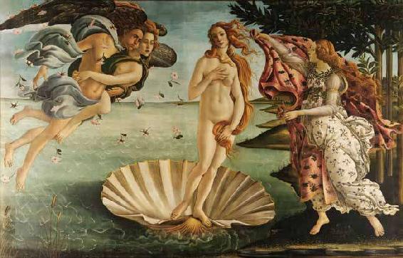 如果刚才那两幅作品大家觉得陌生,我想这幅画大家应该都认识吧?很多朋友管这幅作品叫《贝壳中的维纳斯》,那,我这里正式更正一下,应该叫《维纳斯的诞生》。