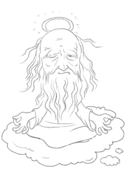 我在画面左下角画了一个跪下手捧法袍的小天使。画完后,大家对这个小天使赞不绝口,并一致认为是全画最精彩的部分。这个小天使既为画面增色,又使其他的部分失色。