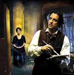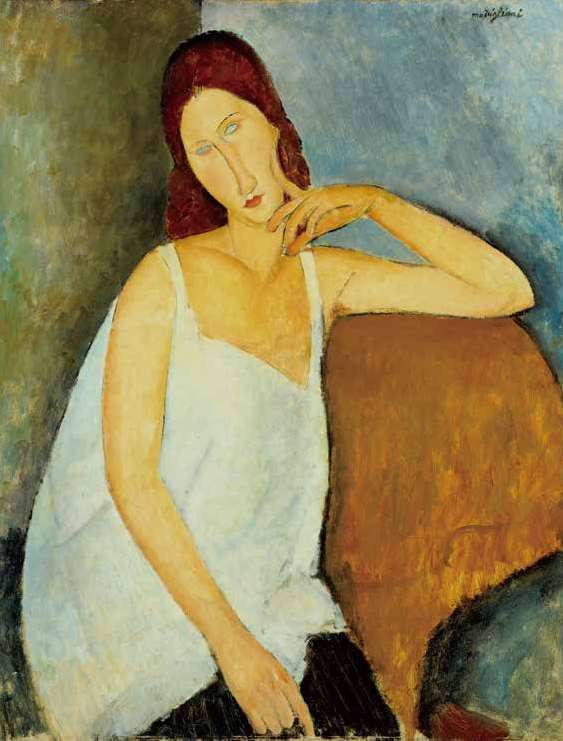 在为珍妮画的众多画像中,我最难忘这幅:怀孕的珍妮身着深蓝色天鹅绒长裙,坐在椅子上,头部微倾,脖颈修长,这次她终于有了眼珠,“只有当我了解了你的灵魂,我才能画出你的眼睛”。我懂了珍妮,画出了她的眼睛,但眼神却是忧伤茫然的,没有聚焦,没有方向,视线落在不知名的地方。