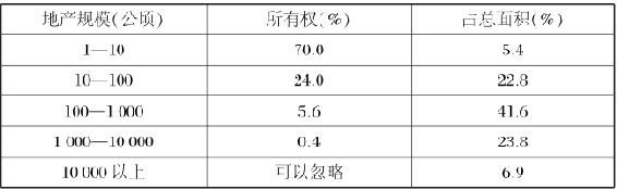 在农村,尤其是在工业不太发达的地区,土地所有权仍是阶级结构中的一个重要因素。通常与土地所有权相联系的是对政治权力的控制。巴西东北部提供了一个土地所有权的典型形式,其中大地产和小地产并存,在大地产上的许多土地无人耕种或者被用于粗放式的养牛业,而自耕农在他们小块的、集约耕作的土地上种植庄稼,放养少量牲畜(见表7)。尽管其他地区不如这里典型,但拉美的土地所有权仍集中在少数人手中。