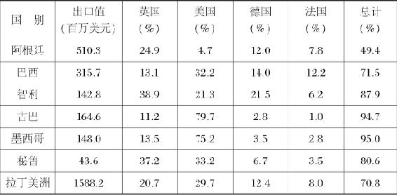 资料来源:布尔默-托马斯著:《独立以来拉丁美洲的经济发展》,第89页。
