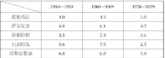 表6.1 中美洲五国国民生产总值的年增长率(1950-1979)(百分比)