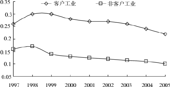 图6.1 1997-2005年中美洲共同市场出口在世界贸易中的份额
